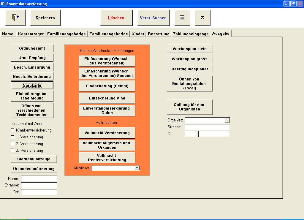 Das vorliegende Programm ermöglicht in jedem Bestattungs-Institut: